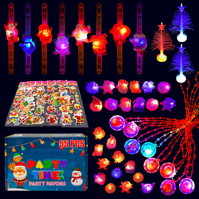 S SWIRLLINE Light Up Christmas Party Favors for Kids 55 PCS - Stocking Stuffers Bulk Small Toys for Kids Party Favors Goodie Bags Stuffers Treats - Pi